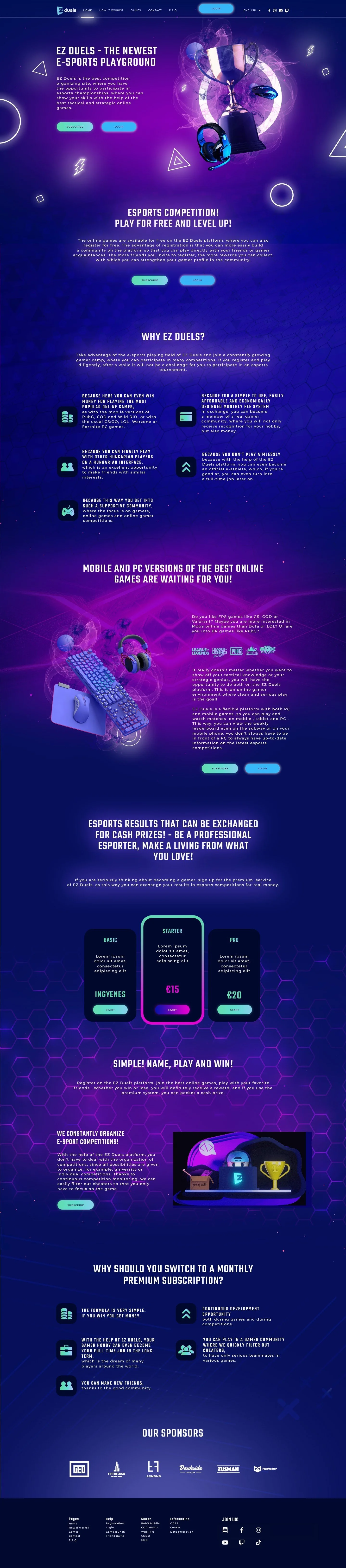 user-friendly informational website for EzDuels, a new Hungarian startup specializing in organizing Esports competitions, primarily for PC and mobile gamers.