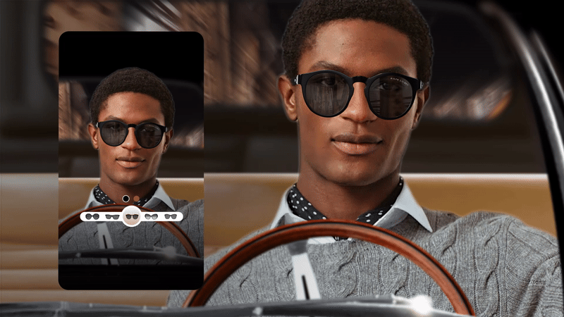Additionally, for the Ralph Lauren Color Shop, we crafted a vibrant and playful interface that enabled users to try on new sunglasses and explore different color options. For the Stirrup range of sunglasses, inspired by classic sports car design, we designed an AR experience that let users try on the sunglasses while virtually driving a classic car, merging fashion with an exhilarating driving experience.